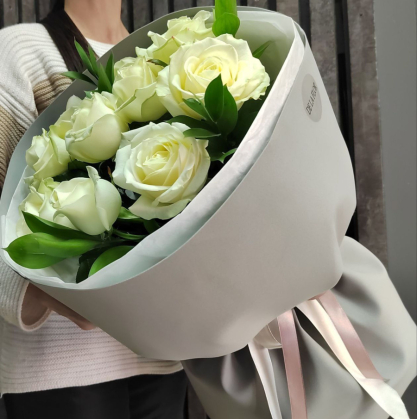Белые розы в дизайнерской упаковке